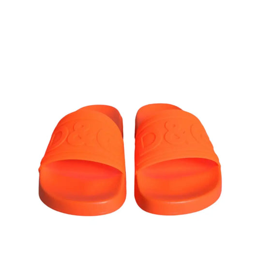 Dolce & Gabbana Orange Rubber Slides Sandals Beachwear Shoes