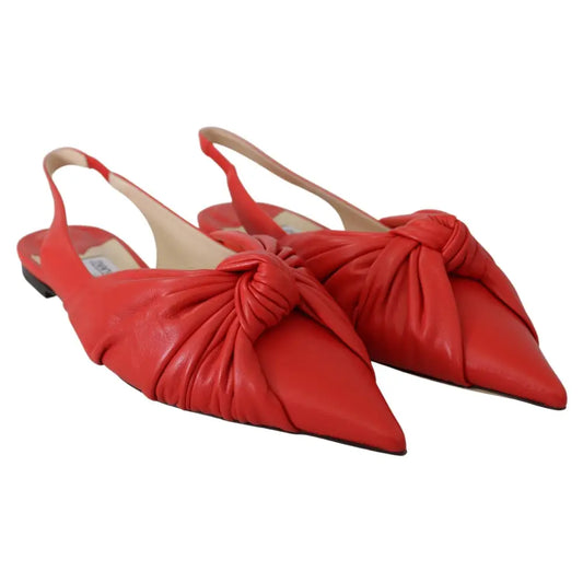 Jimmy Choo Chic Red Pointed Toe Leather Flats
