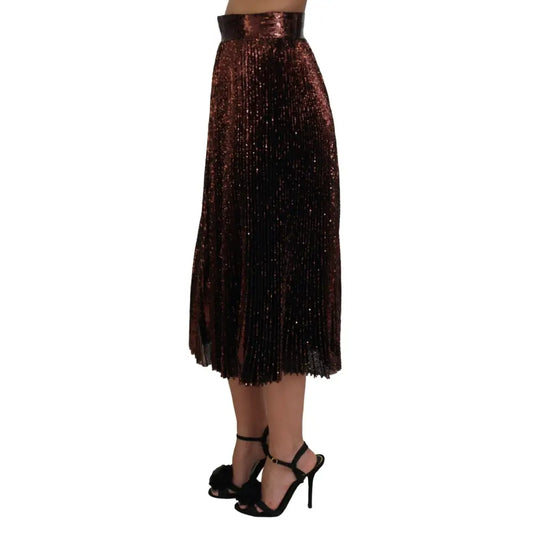 Dolce & Gabbana Bronze Sequined High Waist A-line Maxi Skirt