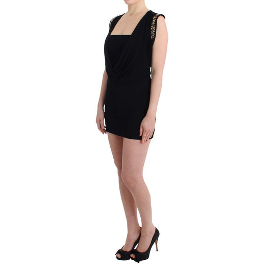 Roccobarocco Black Embellished Jersey Mini Sheath Short Dress