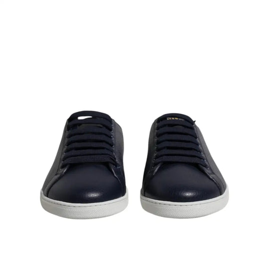 Dolce & Gabbana Dark Blue Leather Low Top Men Sneakers Shoes
