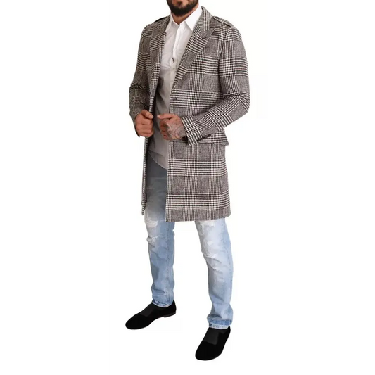 Dolce & Gabbana Gray Check Plaid Long Trench Coat Jacket