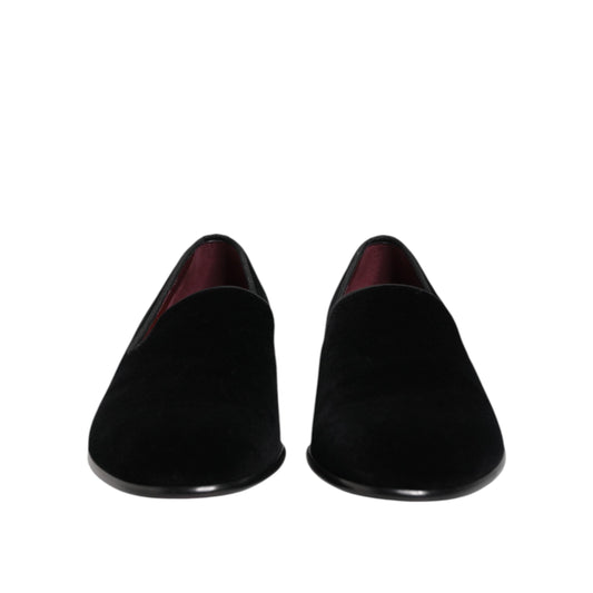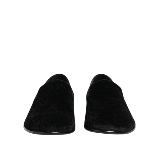 Dolce & Gabbana Black Velvet Slip On Loafers Men Formal Shoes
