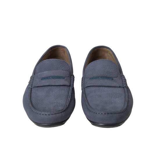 Dolce & Gabbana Blue Calf Leather Slip On Moccasin Shoes
