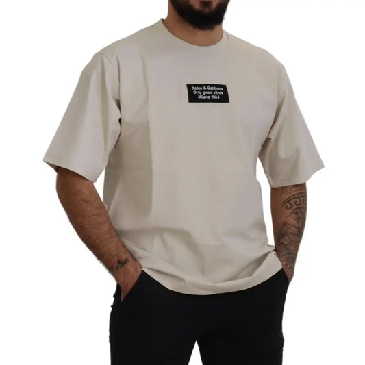 Dolce & Gabbana White Love Peace Cotton Men Crew Neck T-Shirt