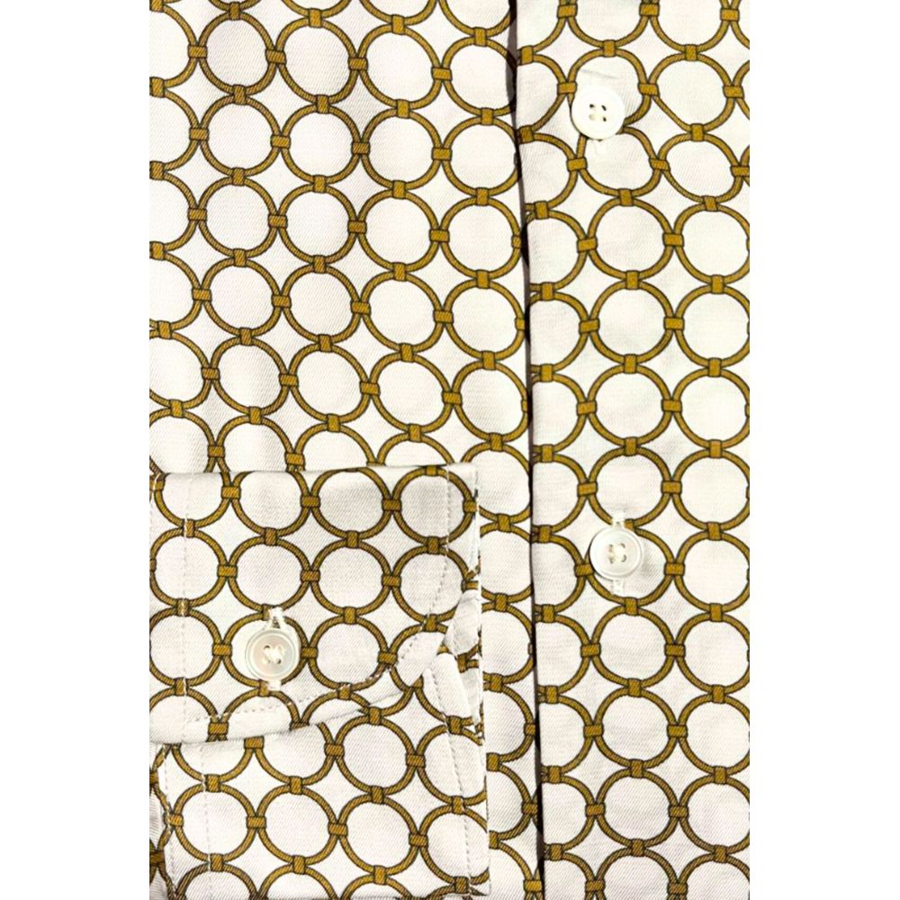 Giv dit outfit et let og luftigt præg med Bagutta's White Viscose Shirt. Denne stilfulde skjorte, skabt af det anerkendte mærke Bagutta, er designet til at tilbyde en perfekt balance mellem klassisk elegance og moderne komfort. Det hvide viskosemateriale tilfører ikke blot en lyseffektfuld farve, men giver også en utrolig blød og let følelse mod huden. Velegnet til enhver lejlighed, fra afslappede sammenkomster til formelle begivenheder, tilfører denne skjorte mangfoldighed og stil til din garderobe.