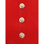 Giv din garderobe en smuk tilføjelse med Balmain Bouclé wool crop top. Designet af det anerkendte luksusmærke Balmain, er denne top mere end blot et stykke tøj - det er et kunstværk. Fremstillet i en iøjnefaldende rød farve, komplementerer denne top enhver stil med et touch af luksus og modens røde tråd.