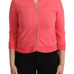 Blumarine Pink 3/4 Sleeve Zip Embellished Sweater