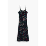 LONG PATTERNED DRESS, CASSIDY, THIN STRAPS, CREW NECK, DETACHABLE LONG-SLEEVED SLIP, CONTRASTING DETAILS, LOGO