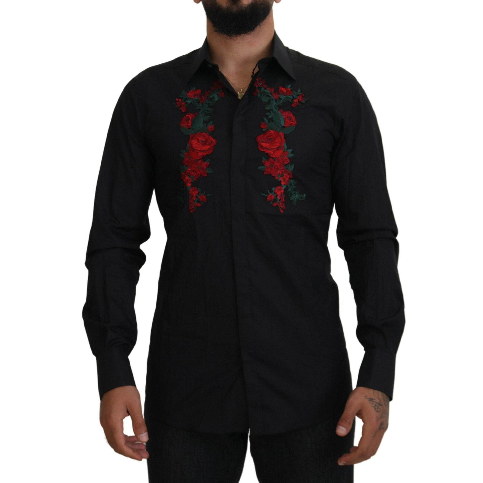 Dolce & Gabbana præsenterer deres seneste mesterværk med denne stilfulde sorte skjorte prydet af forførende blomsterbroderi. Kendt for deres luksuriøse håndværk og innovative design, har dette italienske modehus skabt et must-have til din garderobe. Den dybsorte farve og det elegante blomstermønster gør denne skjorte til et elegant valg, som både kan bruges til dag og aftenens fine arrangementer.