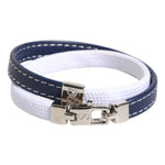 Dolce & Gabbana Blue White Leather Trimmed DG Engraved Silver Tone Clasp Bracelet
