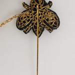 Dolce & Gabbana Lapel Pin Gold Brass Black Crystal Bee Accessories Brooch