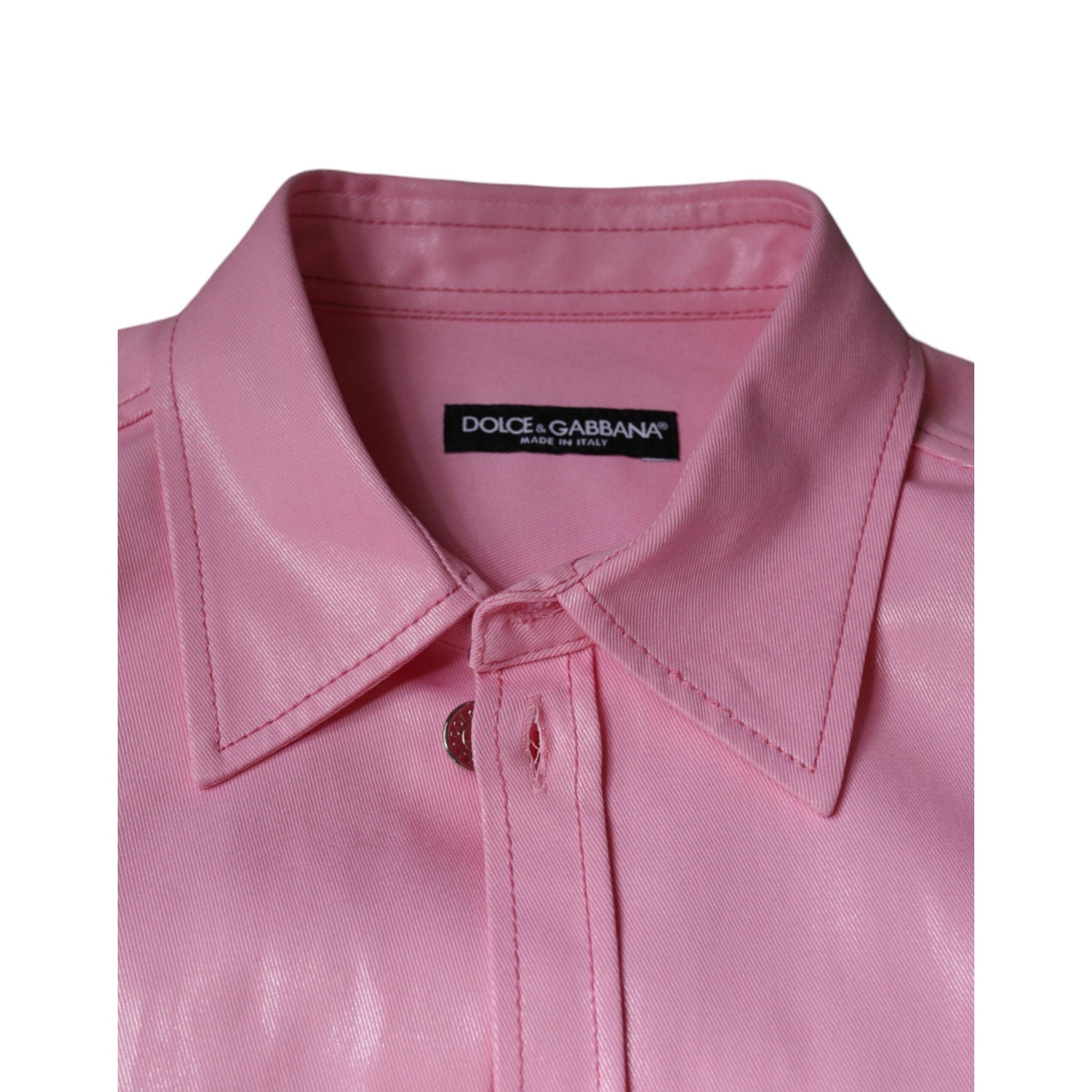 Dolce & Gabbana's pink bomuldsskjorte er ikke kun et bevis på mærkets håndværksmæssige dygtighed, men også en påmindelse om deres evne til at fornye klassiske stilarter med et moderne twist. Fra dagligdagens outfits til særlige begivenheder, denne skjorte tilføjer et strejf af sofistikeret farve og komfort i enhver herregarderobe.
