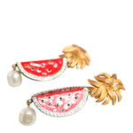 Opgrader dit smykkeskrin med disse iøjnefaldende røde vandmelonsfarvede øreringe fra det prestigefyldte modehus Dolce & Gabbana. De er designet til den moderne kvinde, der ikke er bange for at skille sig ud. Disse øreringe er det perfekte tilbehør til at pifte ethvert outfit op, og bringer en kraftig farve med sig, som tilføjer et friskt og unikt touch.