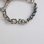 Tilføj et strejf af elegance og sofistikeret luksus til både hverdag og fest med Dolce & Gabbana Silver Tone Chain Lobster Clasp Logo Gray Pearls Bracelet. Fremstillet af materialer af højeste kvalitet, reflekterer dette håndledsornament Dolce & Gabbana's ikoniske designæstetik og deres evne til at omfortolke klassisk italiensk stil. Dette armbånd er et must-have for manden, der værdsætter fine smykker, der pifter hans outfit op.