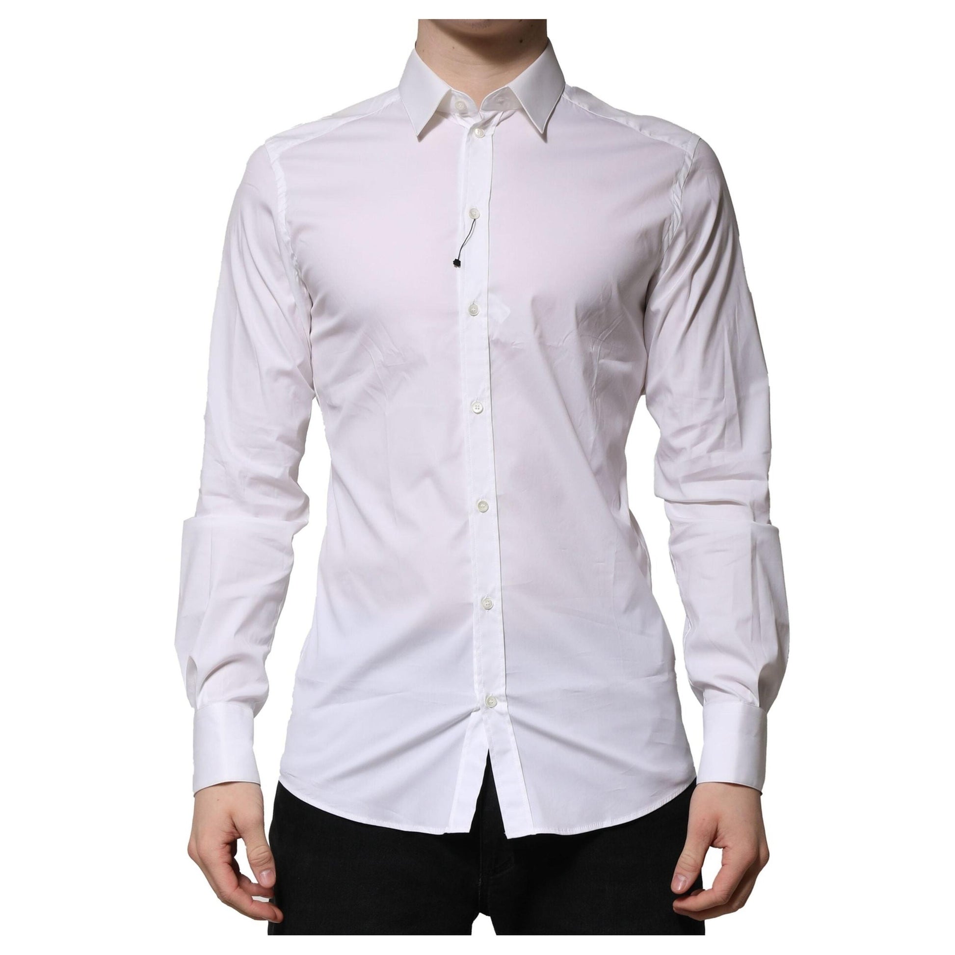 Forfinede elegance møder klassisk funktionalitet i Dolce & Gabbana White Cotton GOLD Long Sleeves Formal Shirt. Lavet til den moderne mand, der værdsætter en sofistikeret garderobe, kombinerer denne skjorte perfekt luksuriøs italiensk design med uovertruffen komfort. Det rene hvide stof udstråler en følelse af fornemhed og tilfører et ubesværet raffineret touch.