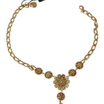Giv et strejf af luksus til din smykkesamling med Dolce & Gabbana Elegant Gold Crystal Floral Charm Necklace. Dette smukke halskæde kombinerer det klassiske med det moderne, og skaber et mesterværk, der vil tilføje elegance til enhver garderobe. Lavet med kærlighed og opmærksomhed til detaljerne, er dette halskæde det perfekte valg for den modebevidste kvinde, der sætter pris på det unikke og smukke.