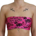 Oplev en unik blanding af tendenser med John Galliano's Pink Newspaper Print Bra Cropped Blouse. Denne bemærkelsesværdige top fanger øjet med sit dristige design, der minder om en avisoverskrift i en iøjnefaldende pink farve. Skabt til den modige kvinde, der elsker at blive bemærket, tilbyder denne top en frynsegavnlig tilgang til mode.