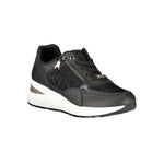 Gå efter et tidsløst og alsidigt look med Laura Biagiotti's sorte polyester sneakers. Designet til at tage din stil til nye højder, blandes italiensk elegance med casual sofistikation, hvilket gør disse sneakers til et must-have i enhver garderobe. Parret er en udpræget påvirkning af den nuværende modelscene, da de opfylder alles behov for både komfort og stil, og repræsenterer kvindelighed parret ind i et fugtigt lag.